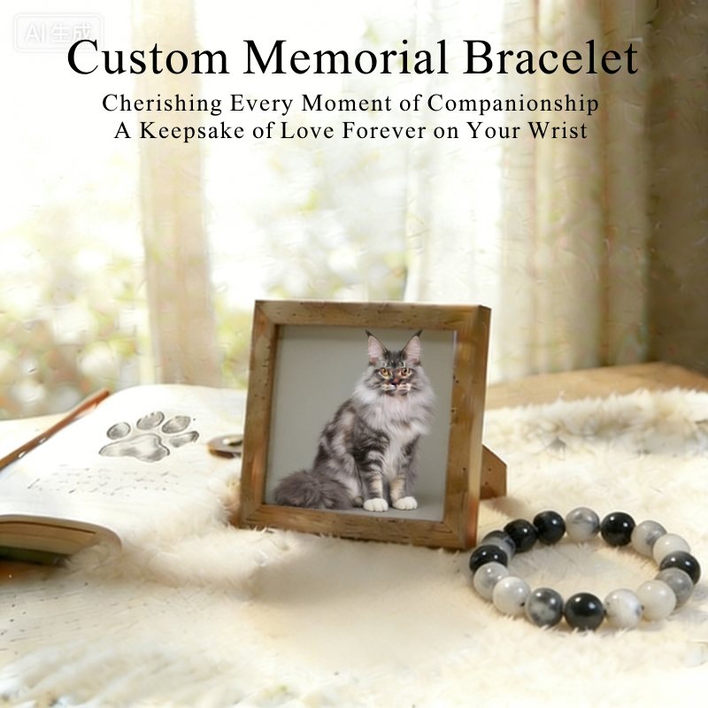 Personalized Pet Memorial Bracelet – Handmade Natural Stone Jewelry to Remember Your Beloved Pet/Dog/Maine Coon
